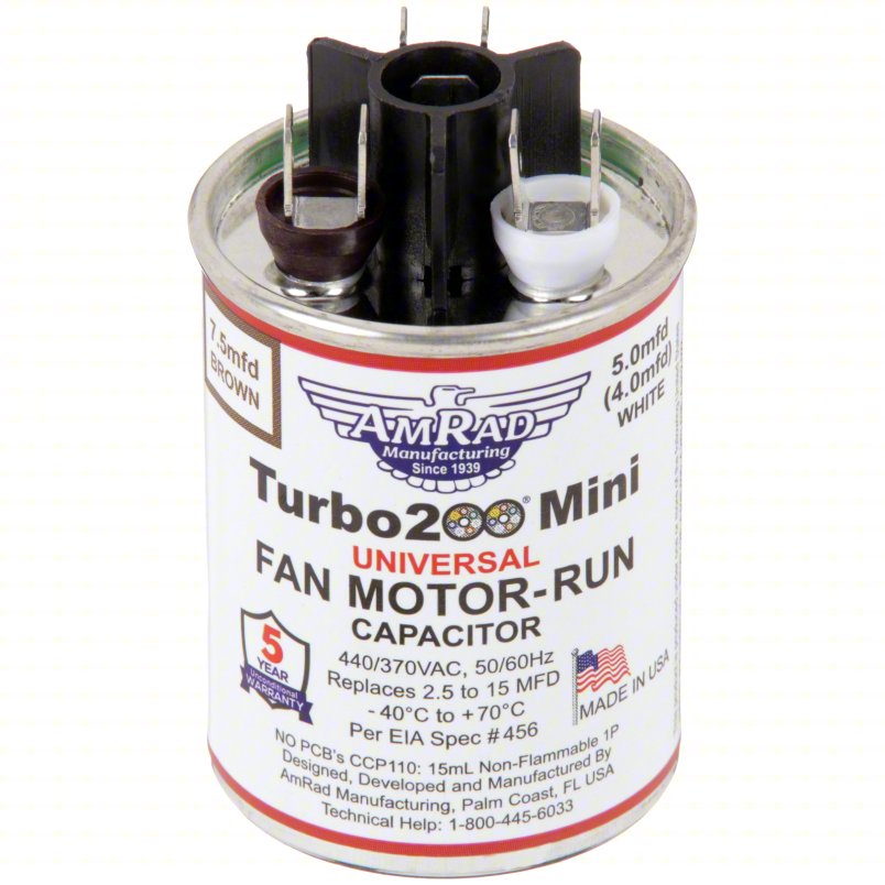 CALL NOW 352-663-8160 BUY A TURBO CAPASITOR TODAY WITH LIFE TIME WARRANTY GLOBAL Motor Run Capacitor: Round, 370/440V AC, 2.5-15 mfd, 1 13/16 in Overall HtItem 2ELT4Mfr. Model Turbo 200 Mini GLOBAL Motor Run Capacitor: Round, 370/440V AC, 2.5-67.5 mfd, 4 in Overall HtItem 2ELT2Mfr. Model Turbo 200 GLOBAL Motor Run Capacitor: Round, 370/440V AC, 5-97.5 mfd, 5 1/4 in Overall HtItem 2ELT3Mfr. Model Turbo 200X